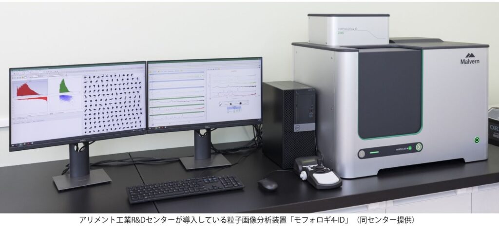 サプリメントや健康食品の受託開発・製造を行うアリメント工業㈱(山梨県南巨摩郡)で研究開発を担当するR&Dセンター(静岡県富士市)が、製品に使用する植物エキスなど天然物原材料の同等性・同質性の評価方法について、新たな手法を開発した。粒子画像分析装置を用い、原材料中の粒子の物性情報と化学情報を総合的に解析することで、同等性・同質性が確保された適正な原材料かどうかを簡便に確認できるようにした。「本来含まれない成分が含まれているかどうかも分析できる可能性がある」という。今後、天然物原材料の品質を評価するための方法の1つとして、同社で受託する製品の製造現場に導入していきたい考えだ。