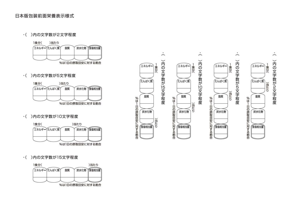 そこでは、日本版FOPNLの対象栄養成分を、すでに義務表示となっている5項目(熱量、たんぱく質、脂質、炭水化物、ナトリウム)とすること、さらに栄養素等表示基準値に対する割合(%表示)を併記することが提案された。また、制度は当面「任意表示」としつつも、一定のルールを設けて統一的に運用する方向が示された。