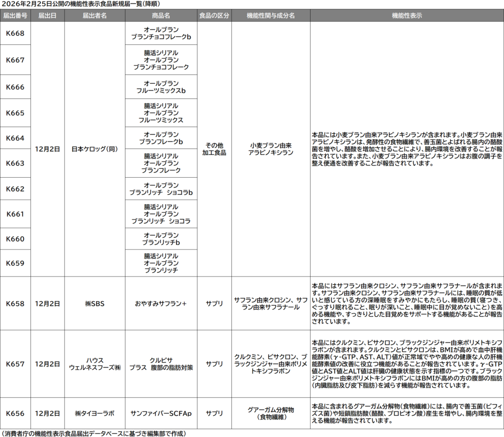 2日連続の更新 【機能性表示食品届出DB更新】25日は13件公開で『K』番台688件に