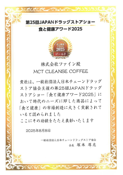 ファイン、「MCT CLENSE COFFEE」がゴールド賞 第25回JAPAN DgSショー「食と健康アワード2025」