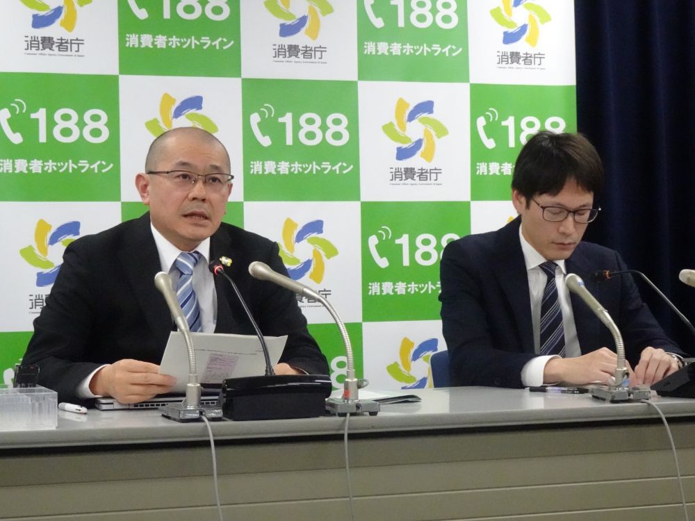 (冒頭の写真:説明する消費者庁取引対策課統括消費者取引対策官の加藤純氏(左)と同課長補佐の長谷川寛晃氏、下の写真:同庁公表資料より)