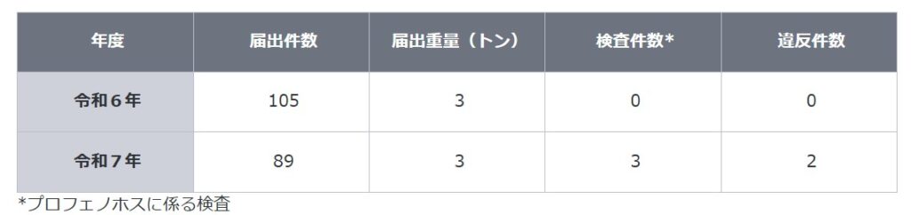 検査結果:テブコナゾール0.57ppm(基準0.01ppm)、ピリダベン0.04ppm(同)、プロフェノホス7.23ppm(同)、ヘキサコナゾール0.03ppm(同)