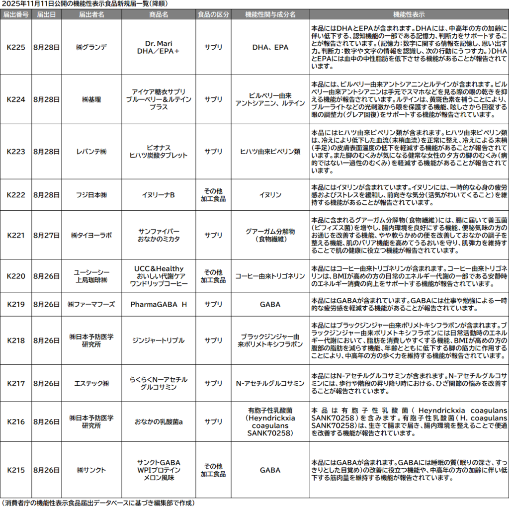 :【6日】11月最初の更新、34件一挙公開 今年度初登場の機能性関与成分も多く