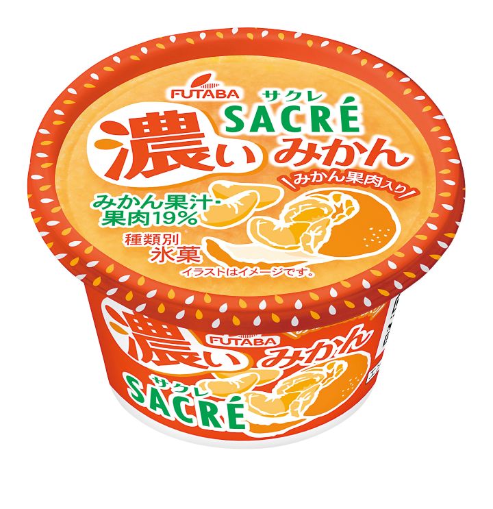 (今年9月より発売開始した秋冬限定の『サクレ 濃いみかん』(=上の写真)。昨年より果汁果肉を増量しさらに濃厚でジューシーな味に仕上げた自信作だ)