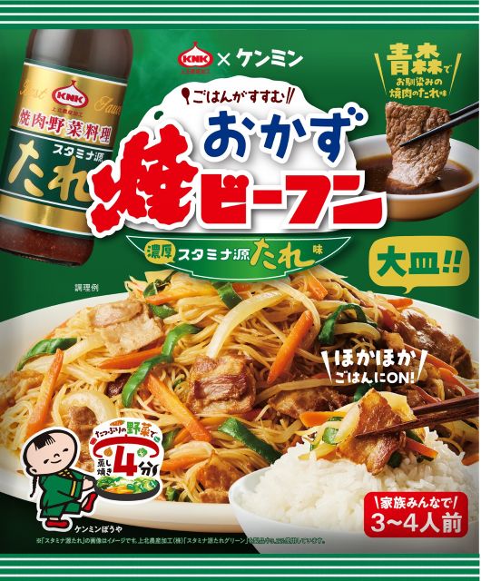 その本家『焼ビーフン』から派生し、消費者ニーズを捉えて育ち盛りの子どもに野菜とご飯をたっぷり食べてもらおうと開発したのが『おかず焼ビーフン』シリーズだ。2年前に『とり野菜みそ味』、昨年は『オイスターソース味』を発売し、好評だったことから今年9月に第3弾として、青森でおなじみの焼肉のたれ「スタミナ源たれ」とコラボした新商品『スタミナ源たれ味』を発売した。