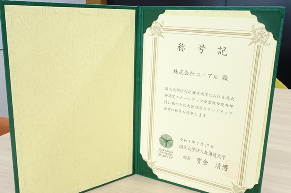 同社は今年、北海道大学の「北大発スタートアップ認定企業」に認定された。学内ベンチャーとは異なり、外部企業でありながら北大と継続的に共同研究を行ってきた実績と内容が評価されたものである。