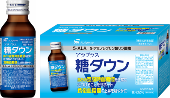 同品は機能性関与成分として「5-アミノレブリン酸リン酸塩」を配合。「本品は5-アミノレブリン酸リン酸塩(ALA)を含みます。ALAは高めの空腹時血糖値を正常に近づけることをサポートし、食後血糖値の上昇を穏やかにする事が報告されています」などと表示。