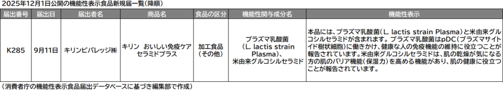 免疫ケア+肌の健康を訴求 【機能性表示食品届出DB更新】キリン、プラズマ乳酸菌+米由来グルコシルセラミド