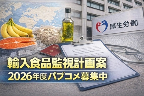厚生労働省は1月20日、2026年度に実施する「輸入食品監視指導計画(案)」について、国民からのパブリックコメントの募集を開始した。輸入食品の安全性確保を目的とするもので、食品衛生法に基づき毎年度策定されている監視指導計画の一環として、来月18日まで募集する。