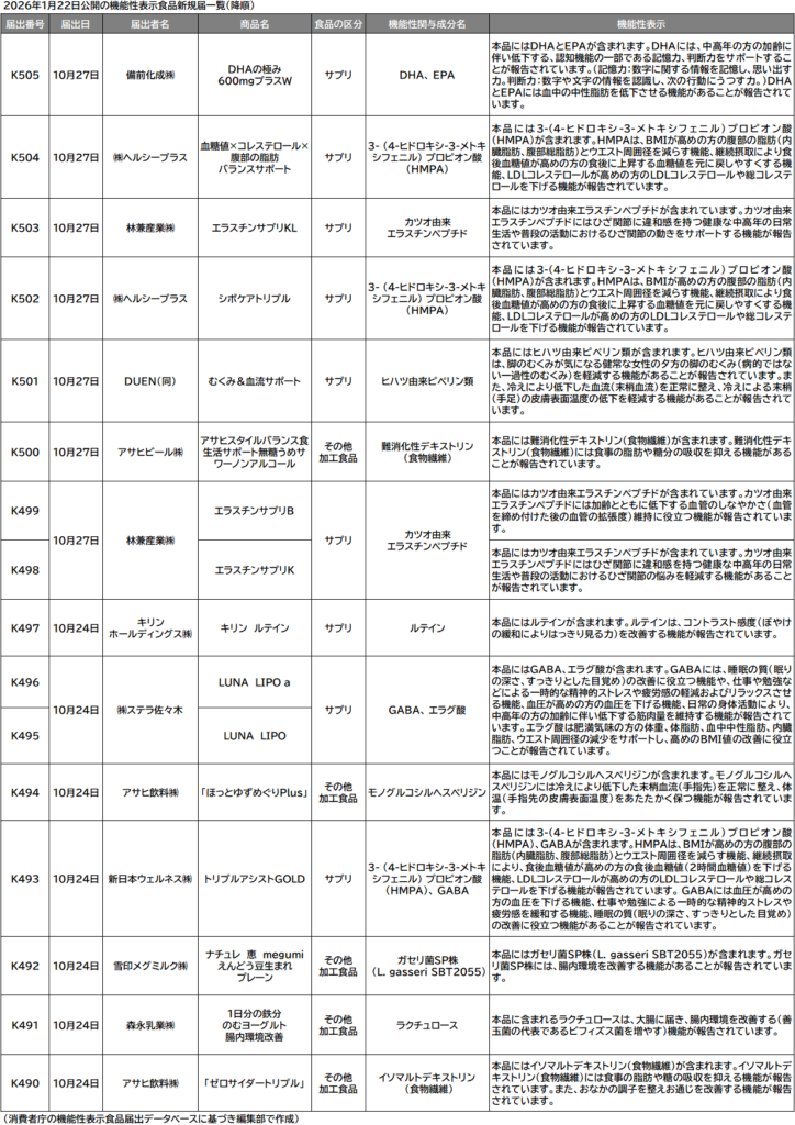 4日連続更新で500件突破 【機能性表示食品届出DB更新】届出者による自己点検等報告も積み上がる