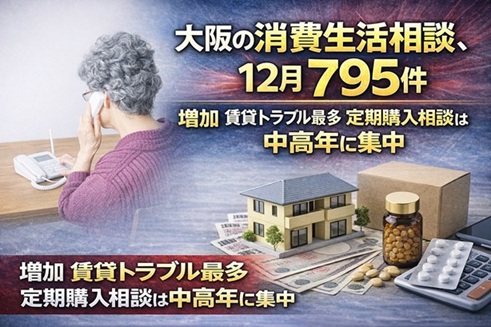 大阪の消費生活相談、12月795件 増加賃貸トラブル最多、定期購入相談は中高年に集中