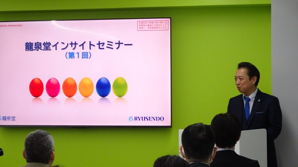 ㈱龍泉堂(東京都豊島区、塩島由晃社長)は27日、本社7階の大会議室において第1回「龍泉堂インサイトセミナー」を開催した。同セミナーは、健康食品原料に関する最新の知見や情報の共有を目的とし、取引先および関係者を対象とした完全招待制で行われた。