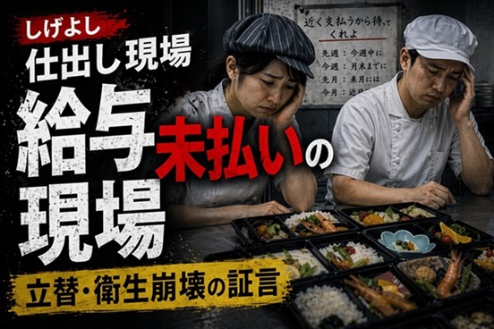 しげよし、仕出し現場で賃金未払い 衛生崩壊や資金処理に疑義、元従業員が証言